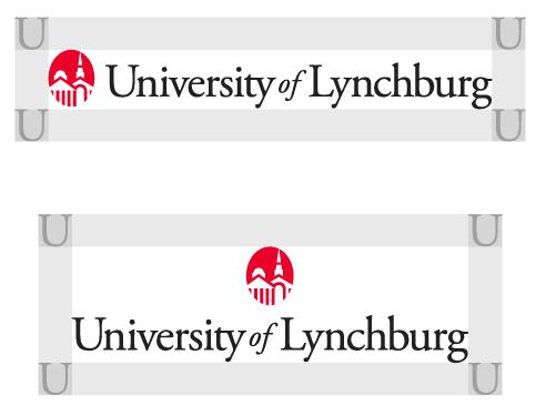 The open area surrounding the logo is based on the height of the capitalized “U” in the word “University,” as shown here. The exact clear space requirements apply to the logo when it is reversed out of a photo or field of color.