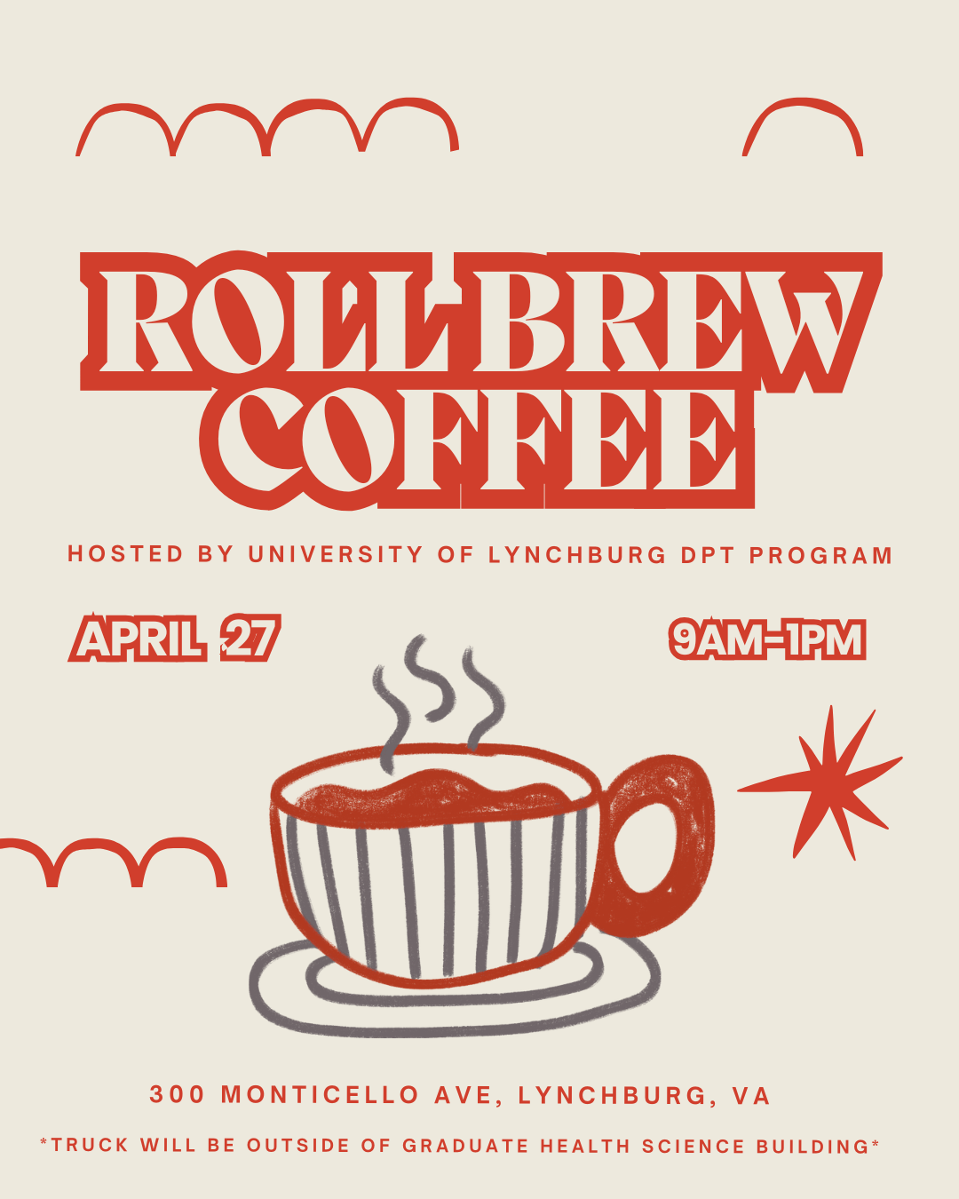 Come out and support the University of Lynchburg DPT students at 300 MONTICELLO AVE, LYNCHBURG, VA and get a coffee with roll brew coffee truck!